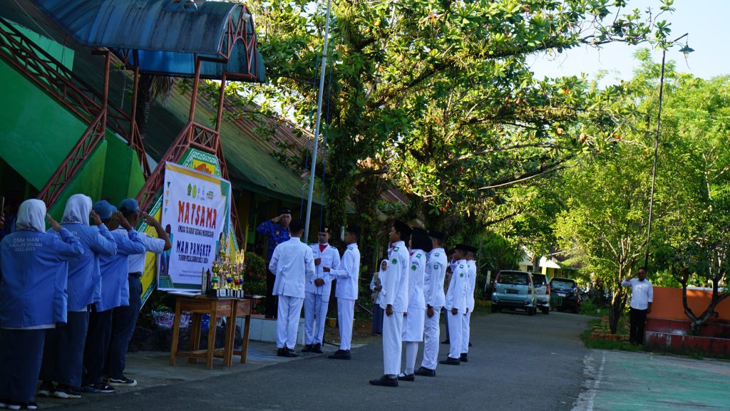 Ma’rang (Pers Man Pangkep)- Kepala MAN Pangkep sebagai pembina upacara bendera pada hari pertama masuk madrasah. Pelaksanaan upacara di lapangan MAN Pangkep yang dihadiri oleh guru dan pegawai MAN Pangkep serta seluruh peserta didik baik dari siswa siswi baru begitupun dari kelas XI dan XII, Senin 17 Juli 2023.